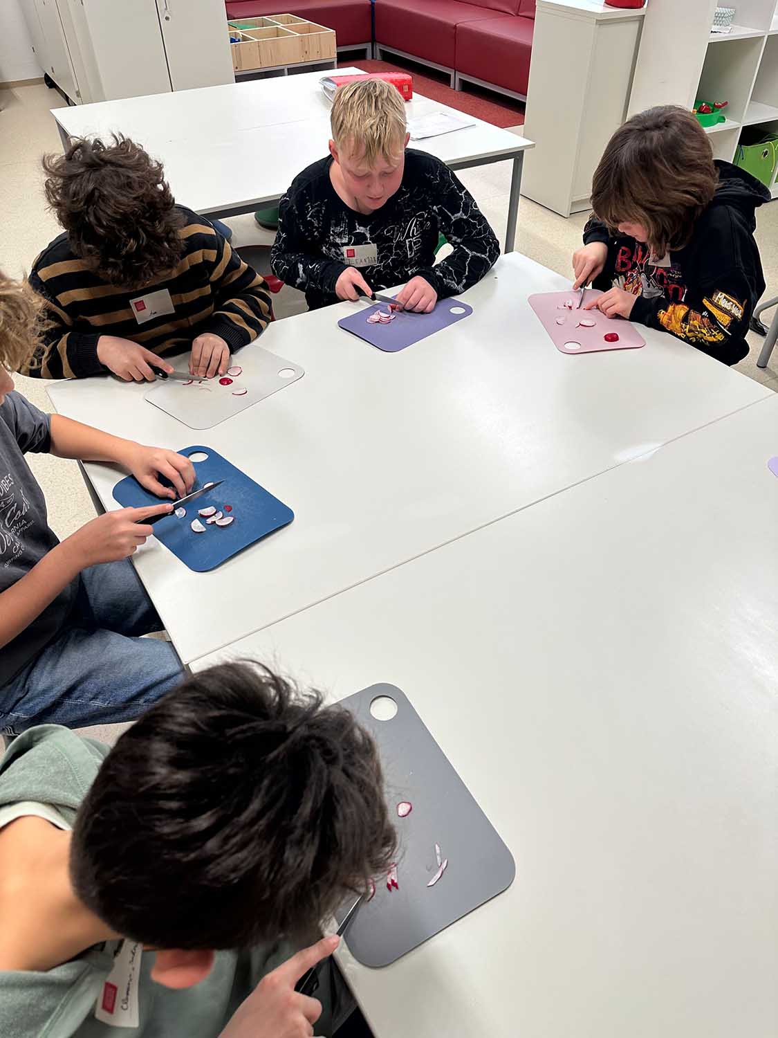 Aus Bausteinen entstanden kleine Kunstwerke, aus Stoffresten Kastaniensammelschlangen. Auch unser VEGGIKOTTCHEN war im Einsatz: Pancakes, Kartoffelspalten aus eigenen Kartoffeln und Freundschaftcookies für den Elternabend wurden zubereitet und genossen.