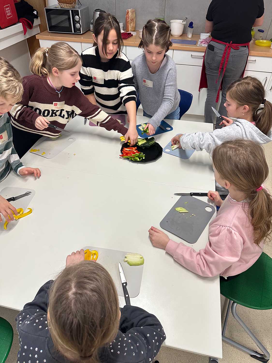 Die 4b Klasse bekam Besuch von der Seminarbäuerin. Bei diesem Workshop lernten die Schüler*innen einiges über die gesunde Schuljause. Es wurden gemeinsam Brötchen, Aufstriche und Desserts aus heimischen Lebensmitteln zubereitet. Natürlich verkosteten wir alles und die Kinder waren begeistert, wie lecker eine gesunde Schuljause sein kann.