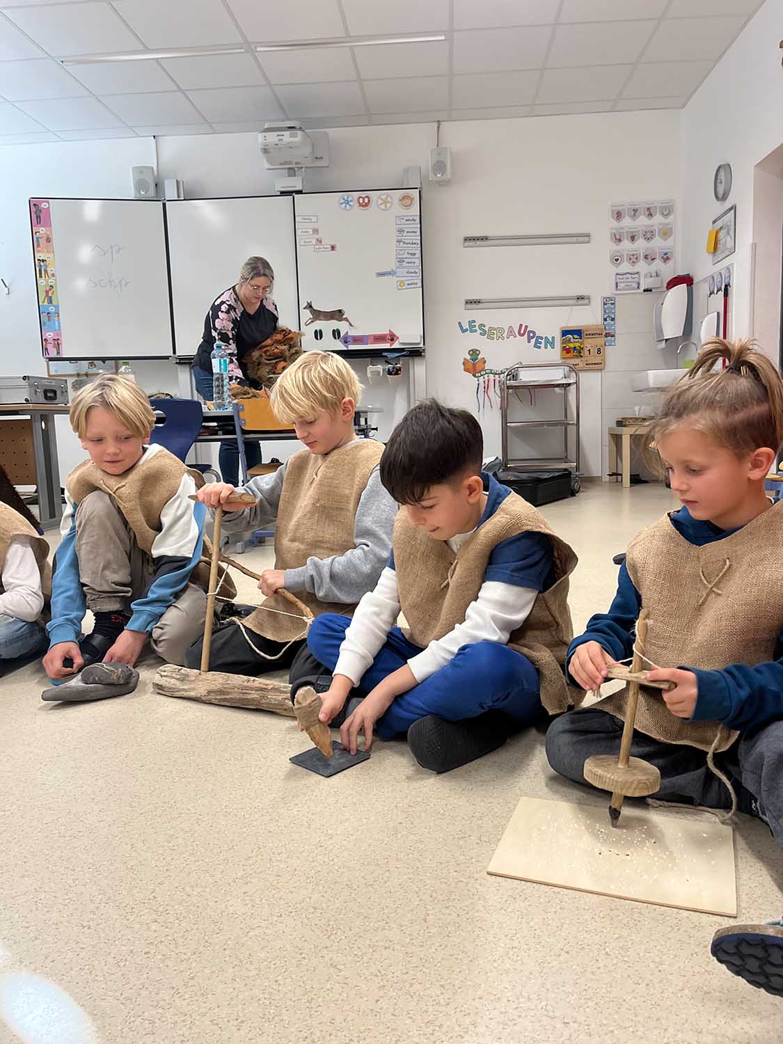 Die 2. Klassen durften einen spannenden Workshop des Kärnten Museums zum Thema „Steinzeit“ erleben und sich wie echte Steinzeitmenschen fühlen. Gemeinsam haben wir herausgefunden, wo die Menschen in der Steinzeit lebten, wie ihr Alltag aussah und welche Unterschiede es zwischen Alt- und Jungsteinzeit gab. Ganz besonders gut hat uns das Theaterspielen und das Herstellen von Lederbeuteln und Pinseln zur Höhlenmalerei gefallen.